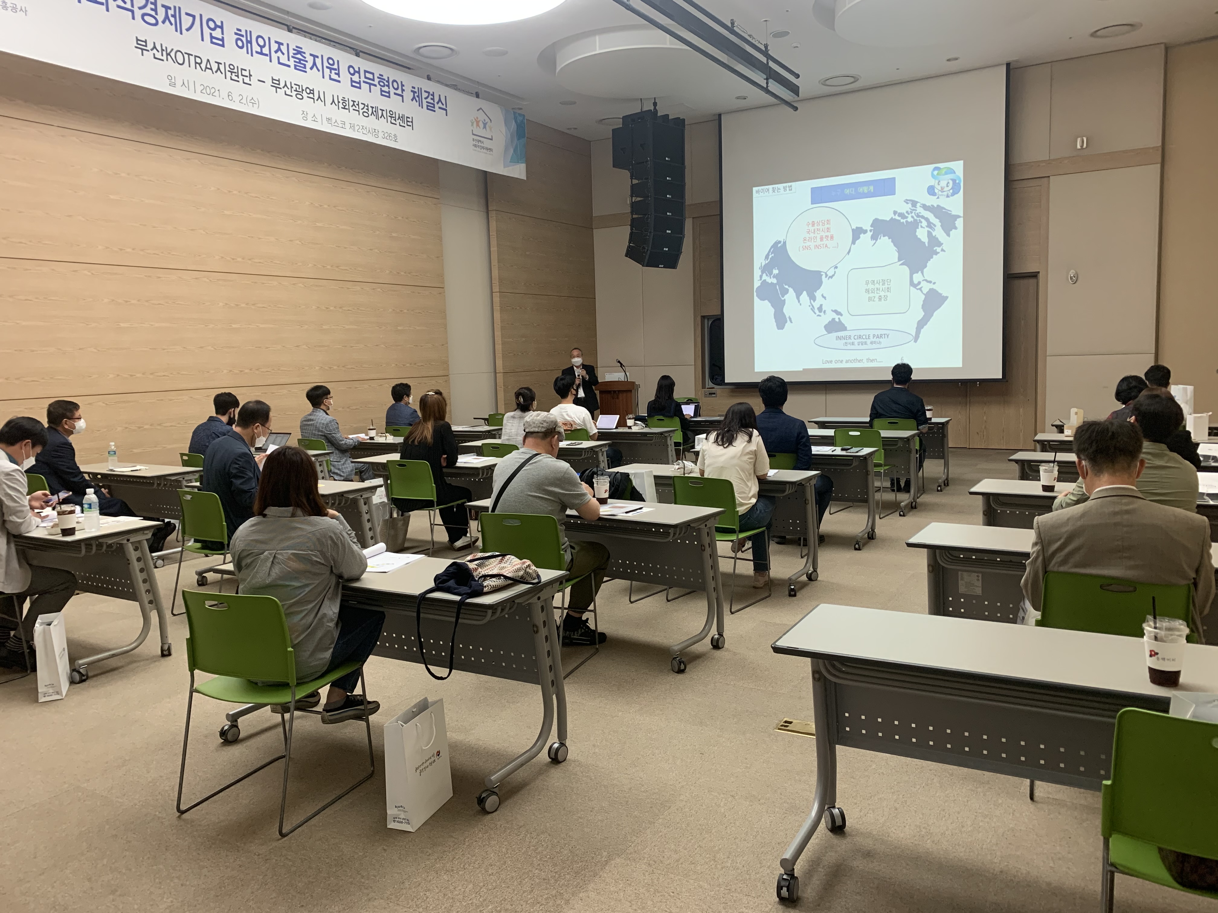 그 후속사업으로 당일, "부산 사회적경제기업 수출마케팅 지원사업 설명회"를 동시 개최하였으며, 부산의 12개 사회적경제 기업이 참여하여 코로나 이후 해외시장 진출을 위한 발판을 다졌다.