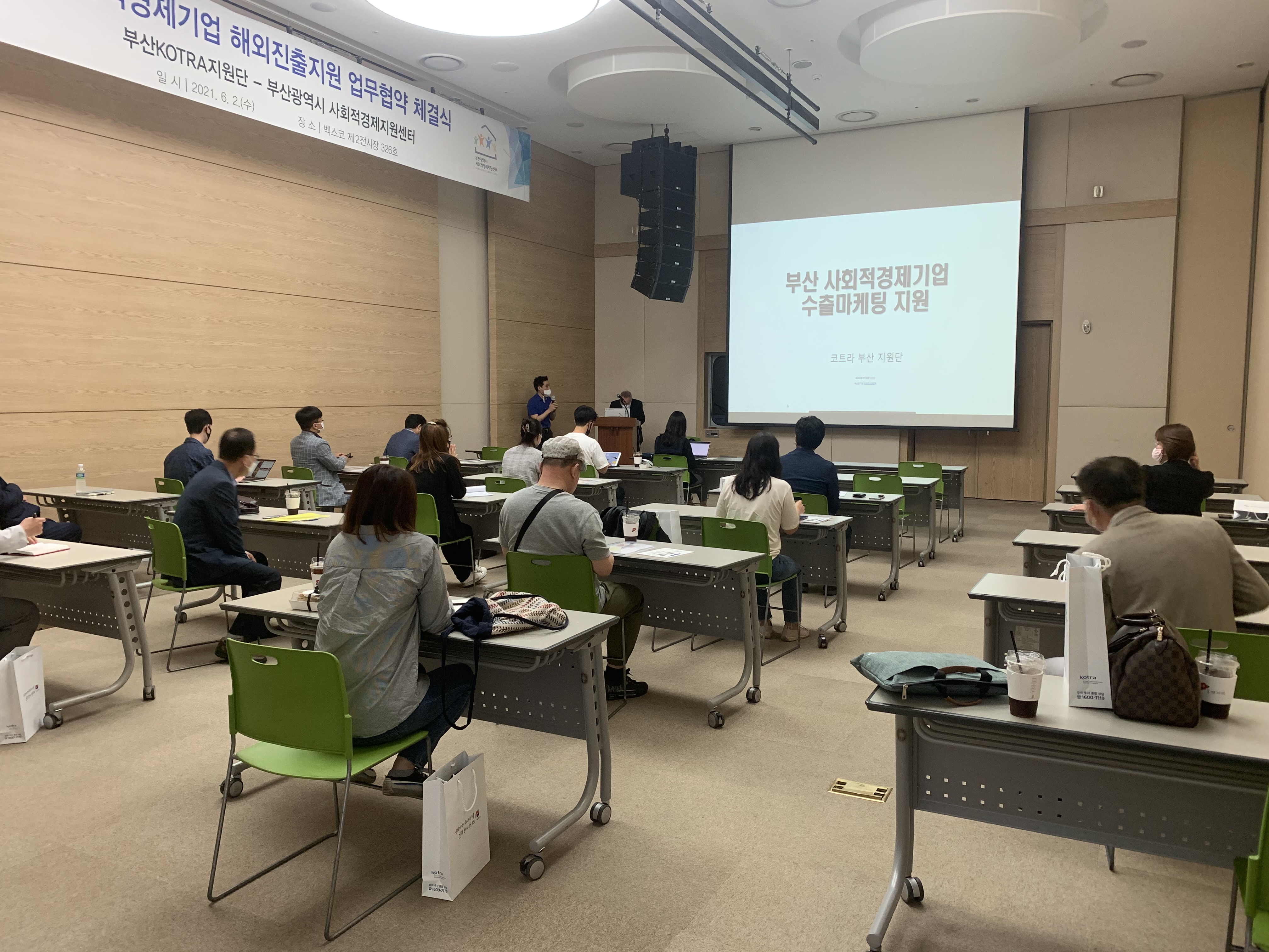 부산광역시 사회적경제지원센터 - 부산 KOTRA 지원단 업무협약(MOU) 체결 및 수출마케팅 지원사업 안내 |