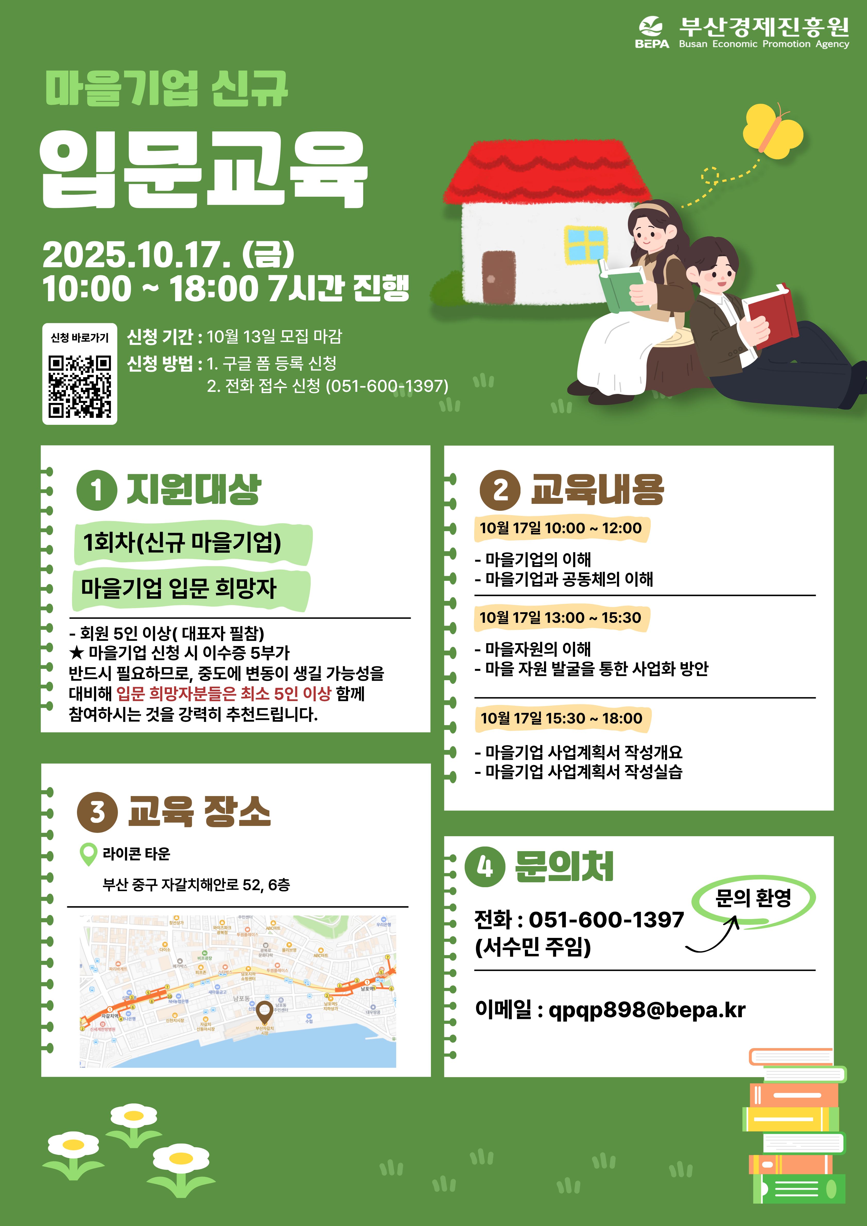 → 부산경제진흥원 마을기업 담당 서수민 주임, 051-600-1397, qpqp898@bepa.kr