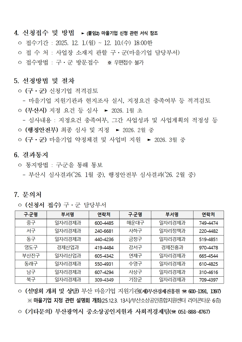 5. 접수방법 : 사업장 소재지 관할 구・군 마을기업 담당부서 방문 접수