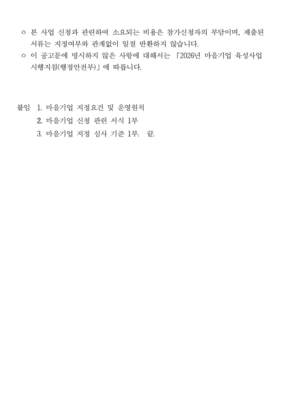2026년 마을기업 육성사업 시행지침(행정안전부)에 따라